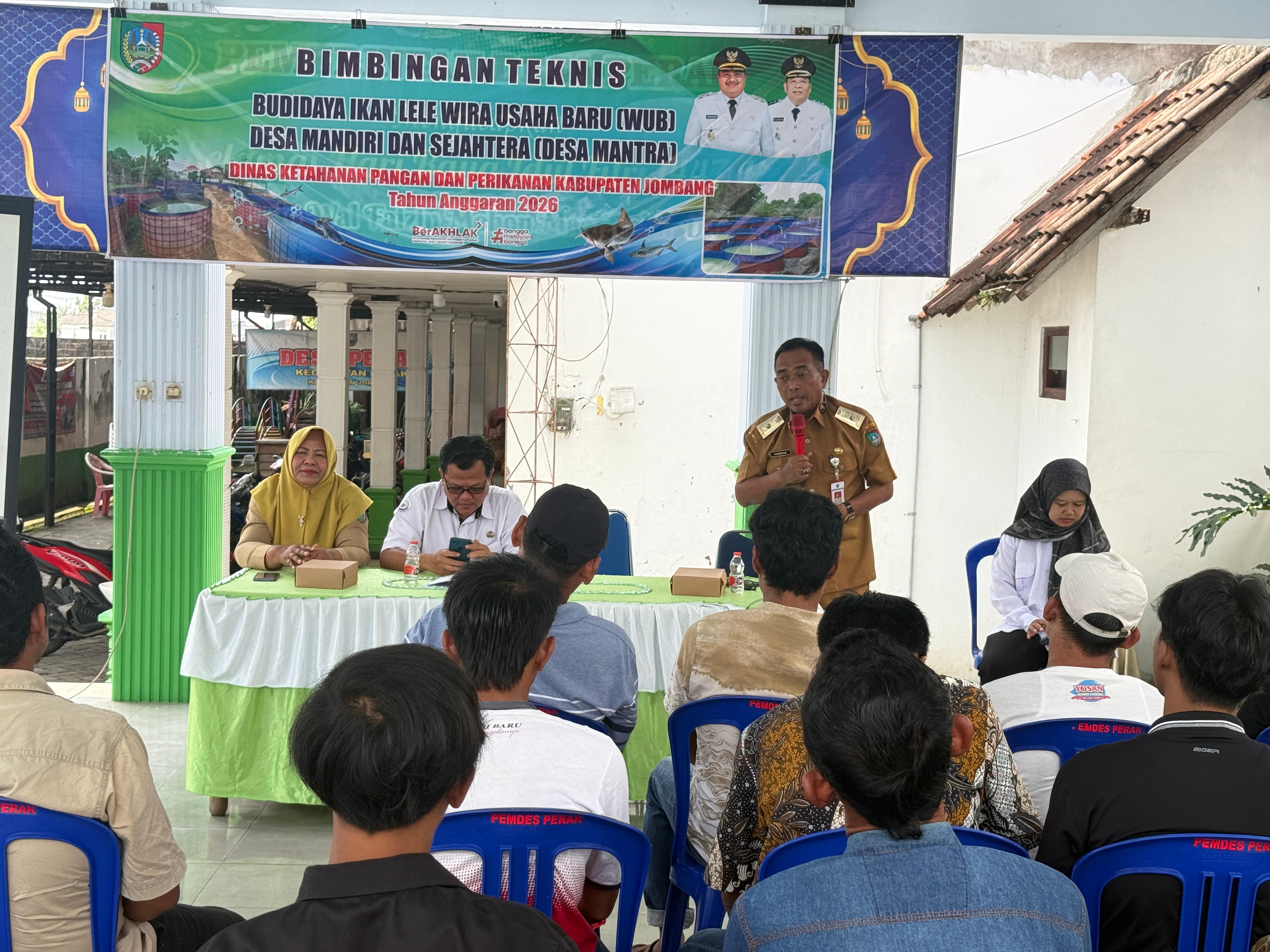 Dalam rangka mendukung Visi Misi Bupati dan Wakil Bupati, Dinas Ketahanan Pangan dan Perikanan Kabupaten Jombang menyelenggarakan Bimbingan Teknis Budidaya Ikan Lele Wirausaha Baru (WUB) Desa Mandiri dan Sejahtera (Desa MANTRA). Kegiatan ini berlangsung di Balai Desa Barongsawahan, Balai Desa Perak dan Balai Desa Kalasemanding