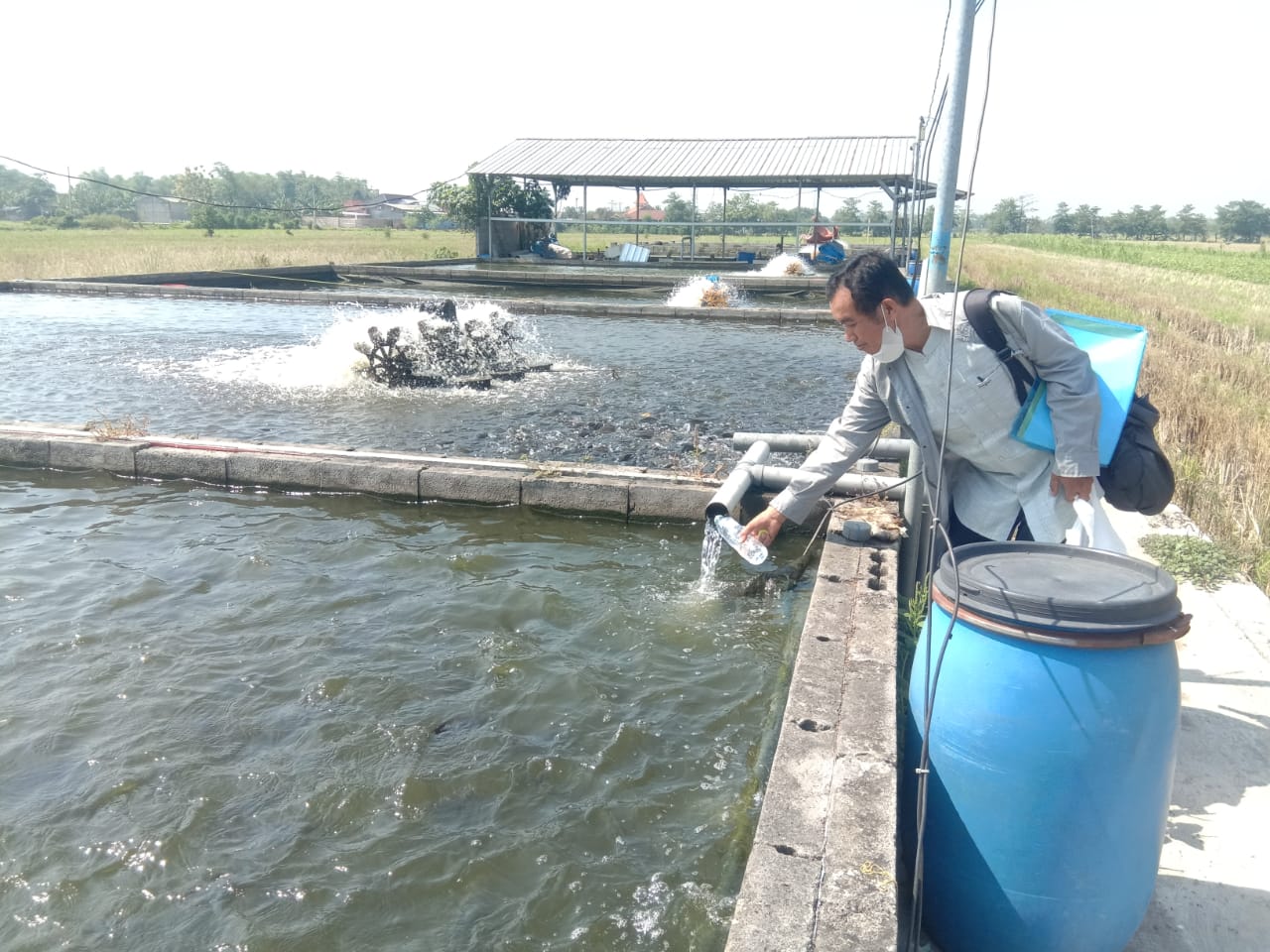 Dinas Ketahanan Pangan dan Perikanan dan Penyuluh Perikanan Kabupaten Jombang melaksanakan kegiatan pengambilan sample air sumber untuk kolam budidaya di Desa Tengaran Kecamatan Peterongan, Desa Jogoloyo Kecamatan Sumobito dan Desa Karangdagangan Kecamatan Bandarkedungmulyo.