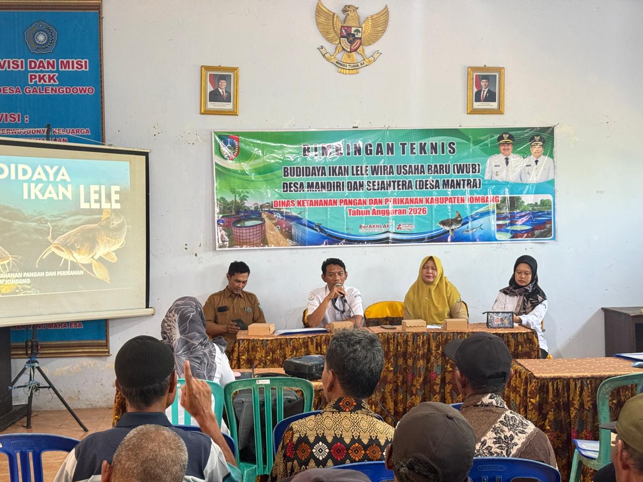 Selasa 21 April 2026, dalam rangka mendukung Visi Misi Bupati dan Wakil Bupati melalui program prioritas Desa Mandiri dan Sejahtera (Desa MANTRA) untuk menumbuhkan Wirausaha Baru (WUB) bidang Perikanan. Dinas Ketahanan Pangan dan Perikanan Kabupaten Jombang menyelenggarakan Bimbingan Teknis Budidaya Ikan Lele. Kegiatan ini berlangsung di Balai Desa Sambirejo, Balai Desa Galengdowo dan Balai Desa Wonosalam Kecamatan Wonosalam.