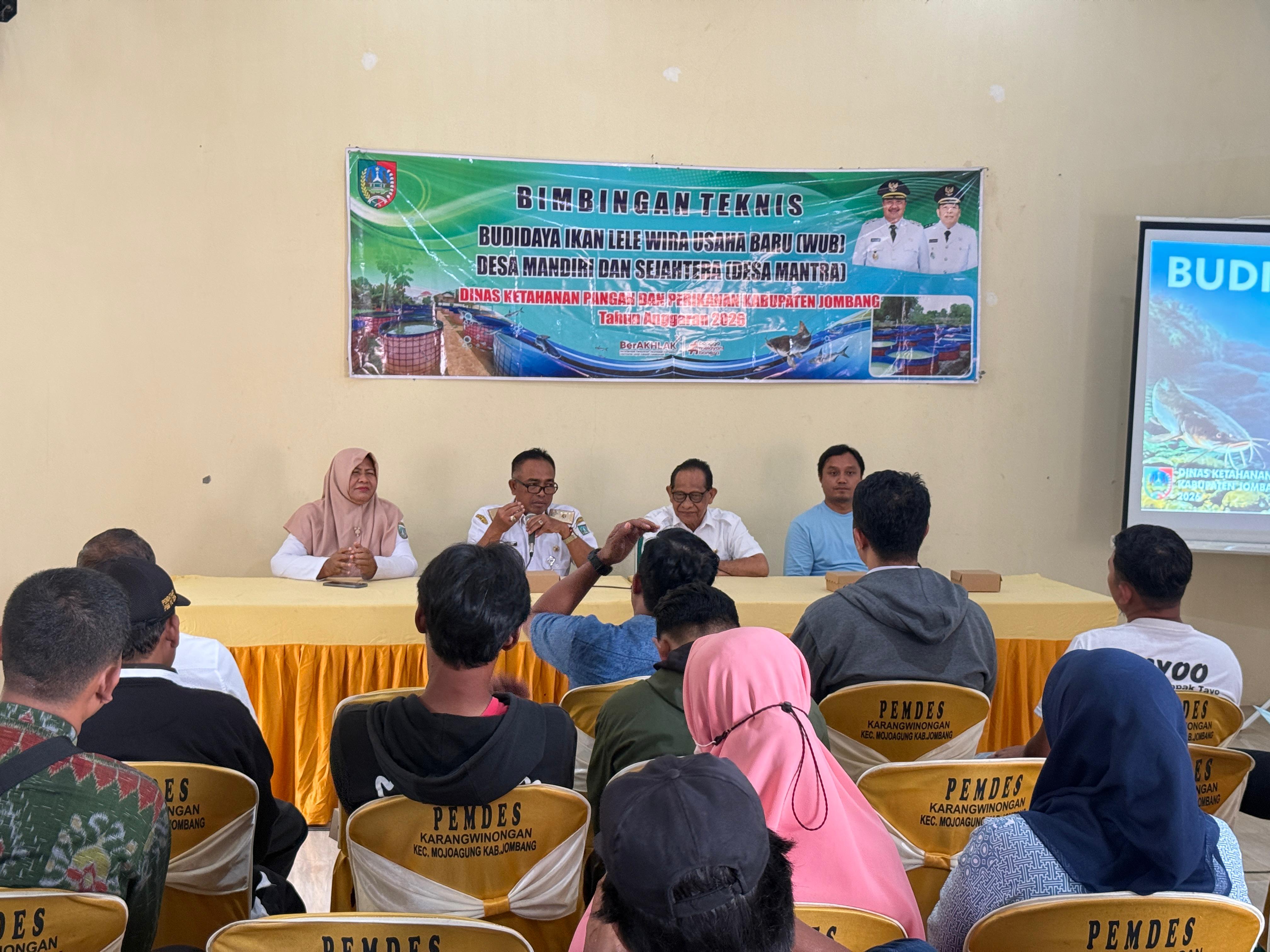 Rabu 22 April 2026, dalam rangka mendukung Visi Misi Bupati dan Wakil Bupati melalui program prioritas Desa Mandiri dan Sejahtera (Desa MANTRA) untuk menumbuhkan Wirausaha Baru (WUB) bidang Perikanan. Dinas Ketahanan Pangan dan Perikanan Kabupaten Jombang menyelenggarakan Bimbingan Teknis Budidaya Ikan Lele. Kegiatan selanjutnya berlangsung di Balai Desa Sumberjo, Balai Desa Karangwinongan dan Balai Desa Kepuhkembeng.