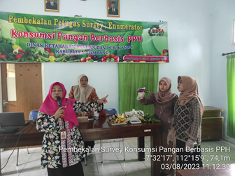 Dalam rangka peningkatan kapasitas dan pemahaman petugas enumerator survey konsumsi pangan berbasis PPH, Dinas Ketahanan Pangan dan Perikanan Kabupaten Jombang melaksanakan pembekalan bagi enumerator pada tanggal 2-3 Agustus 2023, dengan narasumber dari UPT. Laboratorium Gizi Dinas Kesehatan Provinsi Jawa Timur. Dengan jumlah peserta sebanyak 126 orang dari karang taruna putri dari 21 kecamatan, masing-masing kecamatan diwakili 3 desa yang di pilih secara random sampling.