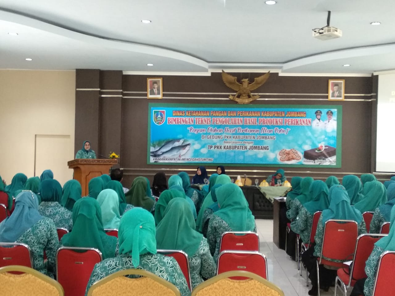Salah satu upaya pemerintah Kabupaten Jombang dalam membudayaan masyarakat gemar makan ikan untuk menurunkan angka stunting terus digalakkan. Dinas Ketahanan Pangan dan Perikanan bekerja sama dengan Tim Penggerak PKK Kabupaten Jombang menyelenggarakan Bimbingan Teknis (Bimtek) Pengolahan Hasil Produk Perikanan. Bimtek tersebut diselenggaran di gedung PKK Kabupaten Jombang pada Senin pagi (17/2), dengan dihadiri sebanyak 105 peserta dari 21 kecamatan.